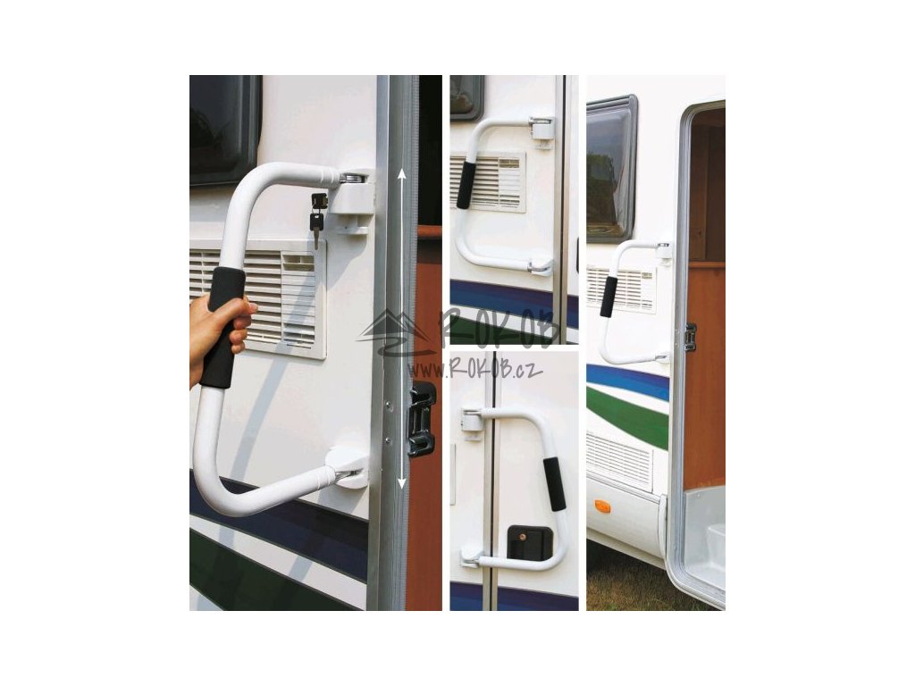 Ideální pro bezpečné nastupování a vystupování z vozidla. Vyrobeno z masivního, eloxovaného hliníku ø 30 mm, tloušťka 2 mm. Ve složeném stavu přes dveře chrání před vloupáním tím, že je uzamčen dodaným zámkem. Zabraňuje náhodnému otevření dveří během jízdy. Hodí se pro všechny dveře s pravým a levým otevíráním.