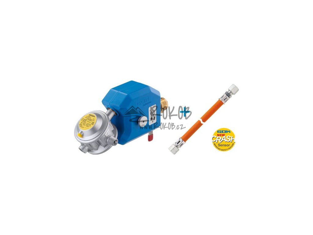 Bezpečnostní systém regulace tlaku plynu pro provoz jednoválcových systémů v obytných automobilech a karavanech během cestování, pro přímé připojení k plynové lahvi. Skládá se z: mechanického snímače nárazu s novým kyvadlovým řešením, regulátoru nízkého tlaku s bezpečnostním zařízením proti přetlaku S2SR (ÜDS), hadicového vedení a držáků regulátoru.
