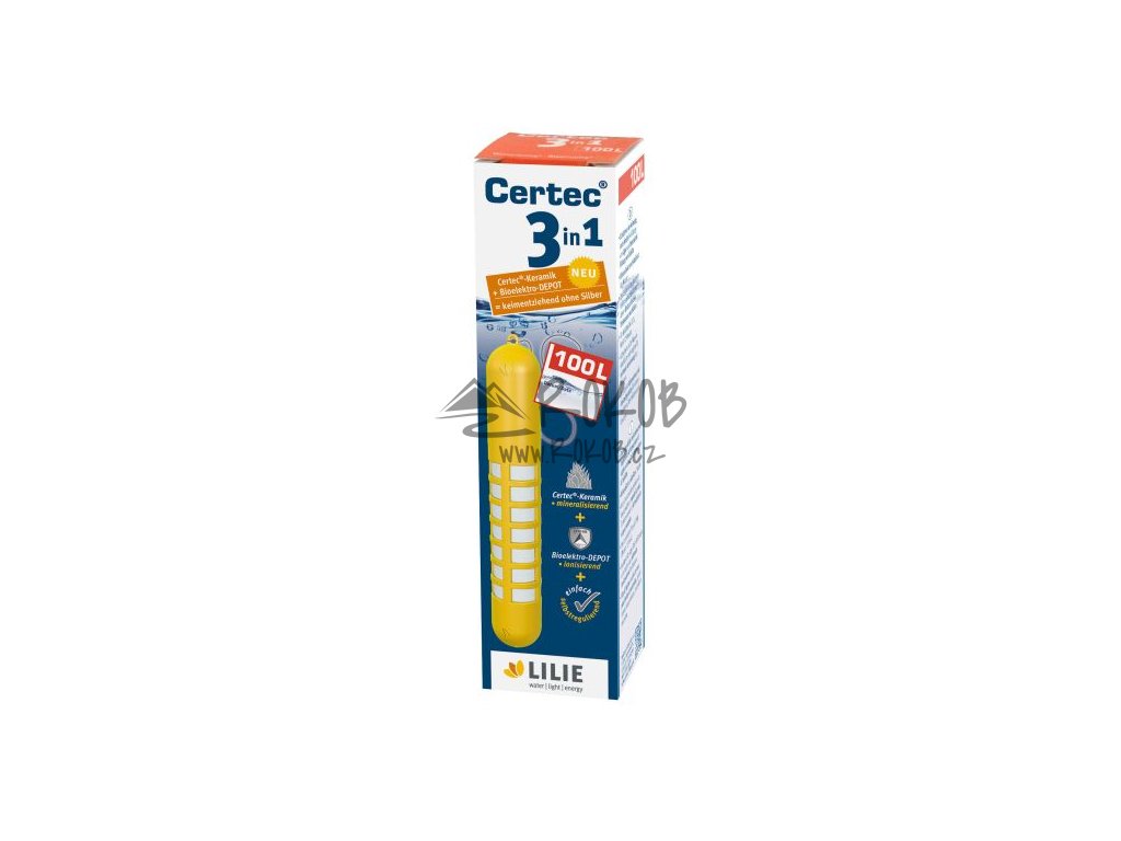 LILIE Certec 3 in 1 je konzervační kapsle určená k dlouhodobé ochraně vody v nádrži bez použití stříbra. Díky trojí účinnosti zabraňuje růstu bakterií a tvorbě biofilmu, zároveň podporuje minerální složení vody. Kapsle plave na hladině a je vybavena nylonovým řetízkem pro snadné vyjmutí.
