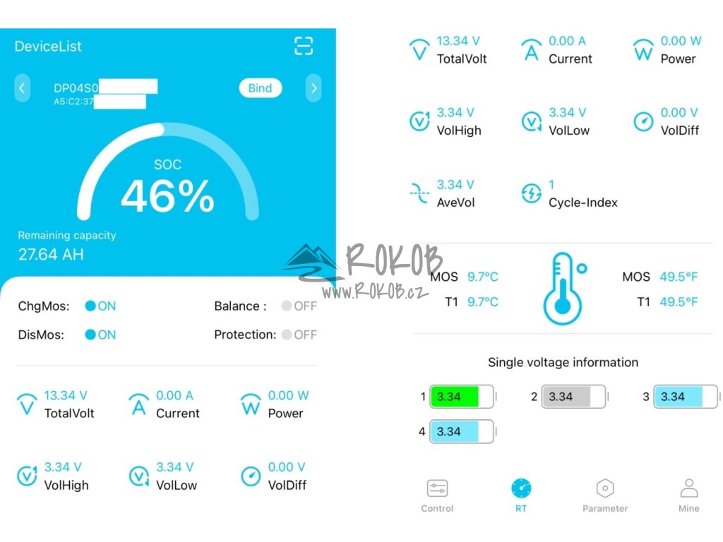 Všechna důležitá data o bateriích máte vždy na svém smartphonu nebo tabletu k dispozici. Aplikace zobrazuje data v reálném čase, když je váš smartphone připojen s baterií přes Bluetooth. Baterii je možné přes management vybalancovat, zkalibrovat, updatovat firmware, zkontrolovat statistiky, teplotu, napětí, zátěž a mnoho dalšího.