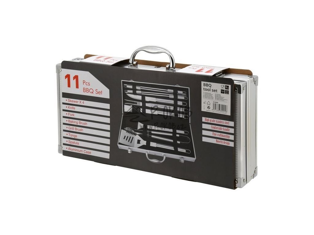 Profesionální sada 11 ks nářadí, se vším potřebným pro grilování i následnou údržbu grilu.