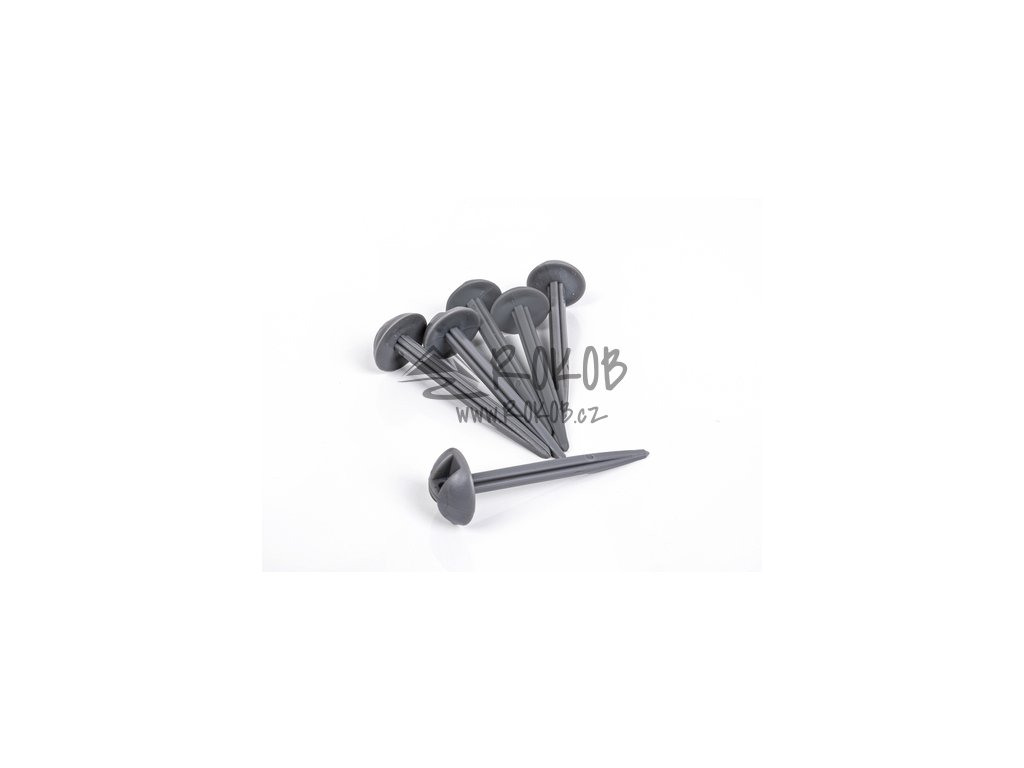 Plastový hřebík se širokou hlavou je určen k upevnění stanových koberců, podlah nebo plachet.