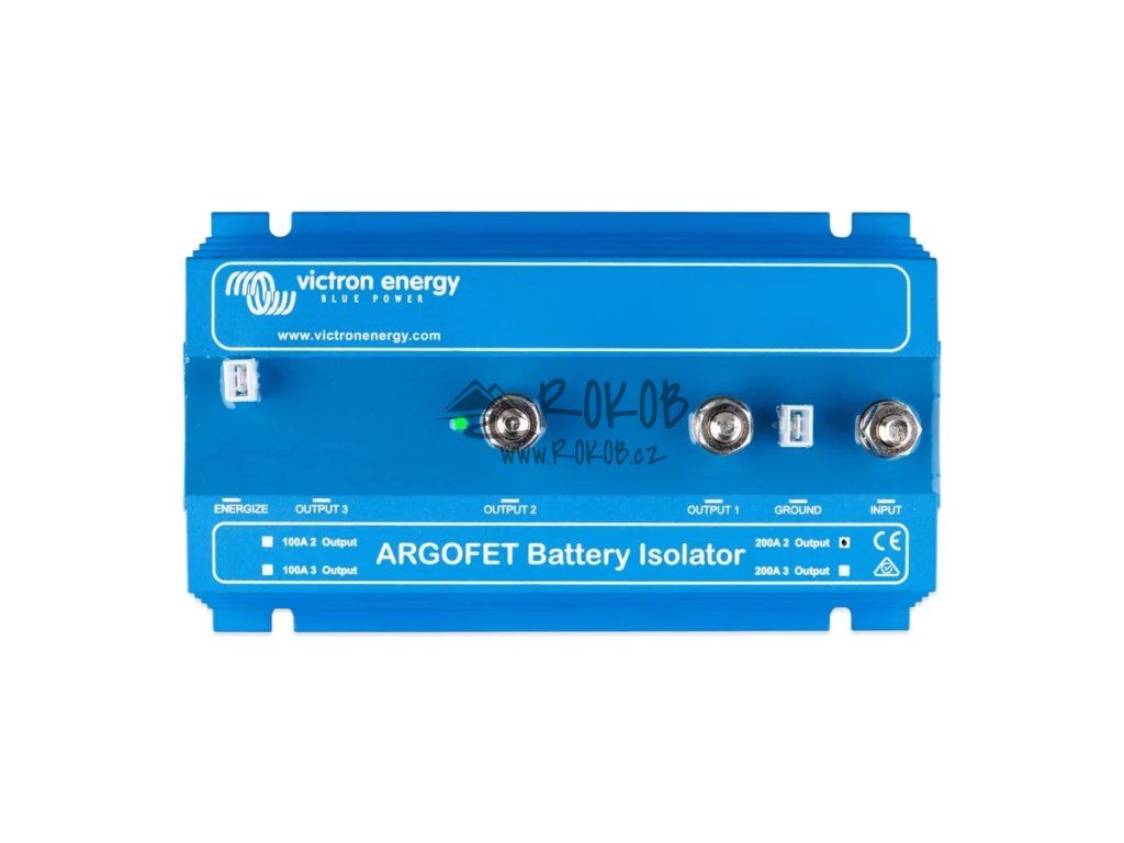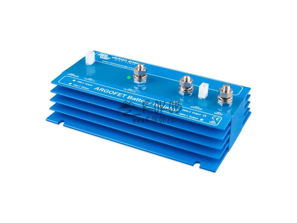 Argofet 200-2 je bateriový oddělovač určený pro současné nabíjení dvou baterií z jednoho alternátoru nebo z jednoho výstupu nabíječky, aniž by byly baterie mezi sebou propojeny. Vybití servisní baterie tak neovlivní startovací baterii.