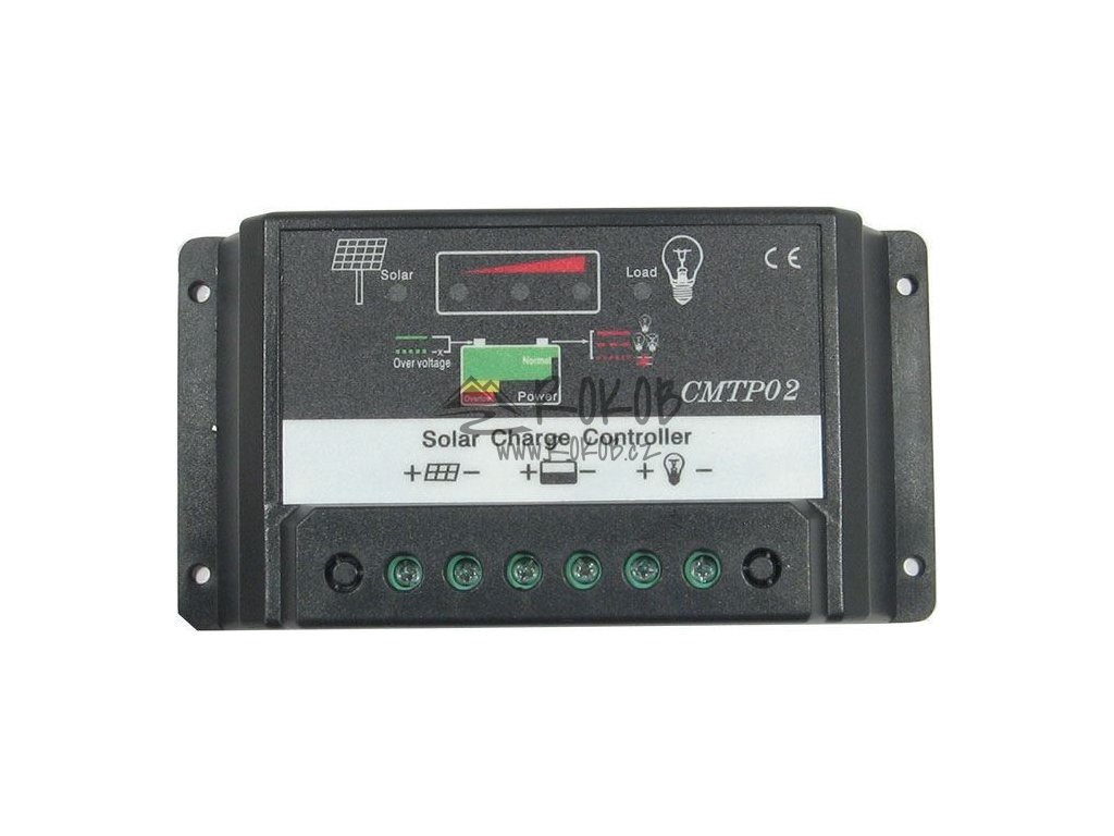 Jednoduchý regulátor PWM pro olověné baterie. Určen pro systémové napětí 12V nebo 24V s pevně nastavenými provozními parametry a maximálním nabíjecím i zátěžovým proudem 30A pro panely do 360W-12V nebo 720W-24V.**Stručný popis regulátorů PWM:**