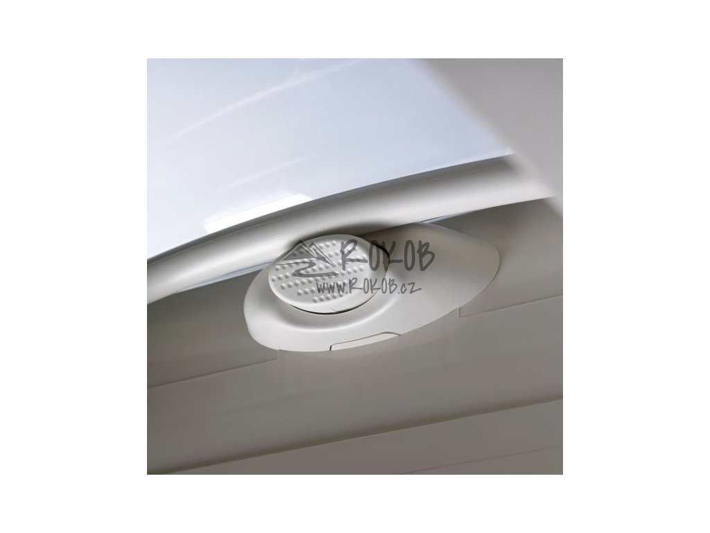 Oblíbené střešní okno Dometic Mini Heki FL (bývalé MIni Heki Style). Má síťku proti hmyzu a zatemňovací roletu. Okno lze pohodlně otevřít ve třech polohách.