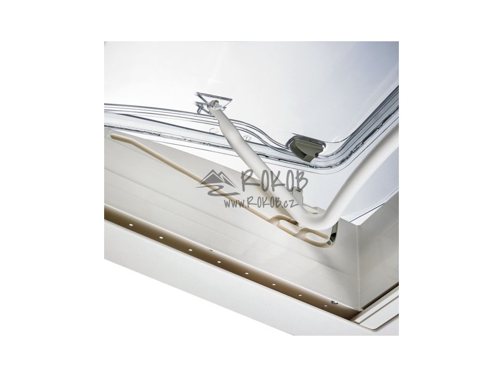 Oblíbené střešní okno Dometic Mini Heki FL (bývalé MIni Heki Style). Nucená ventilace zajišťuje stálou výměnu vzduchu uvnitř vozidla. Má síťku proti hmyzu a zatemňovací roletu. Okno lze pohodlně otevřít ve třech polohách.