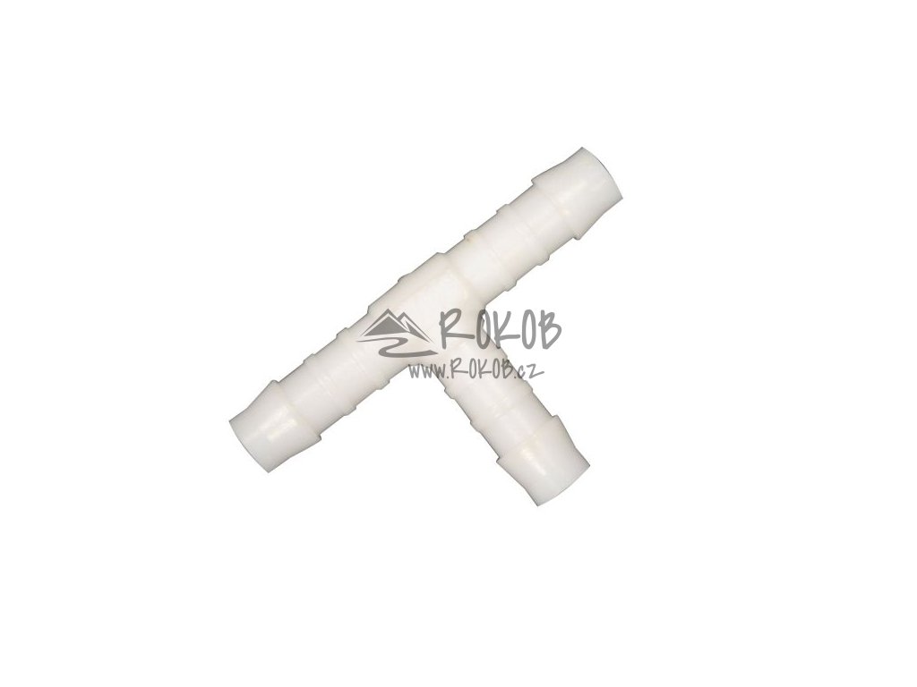 T-spojka vhodná pro hadice s průměrem 8 mm. Pro transport vody, vzduchu, oleje a paliv. Vyrobena z odolného plastu.