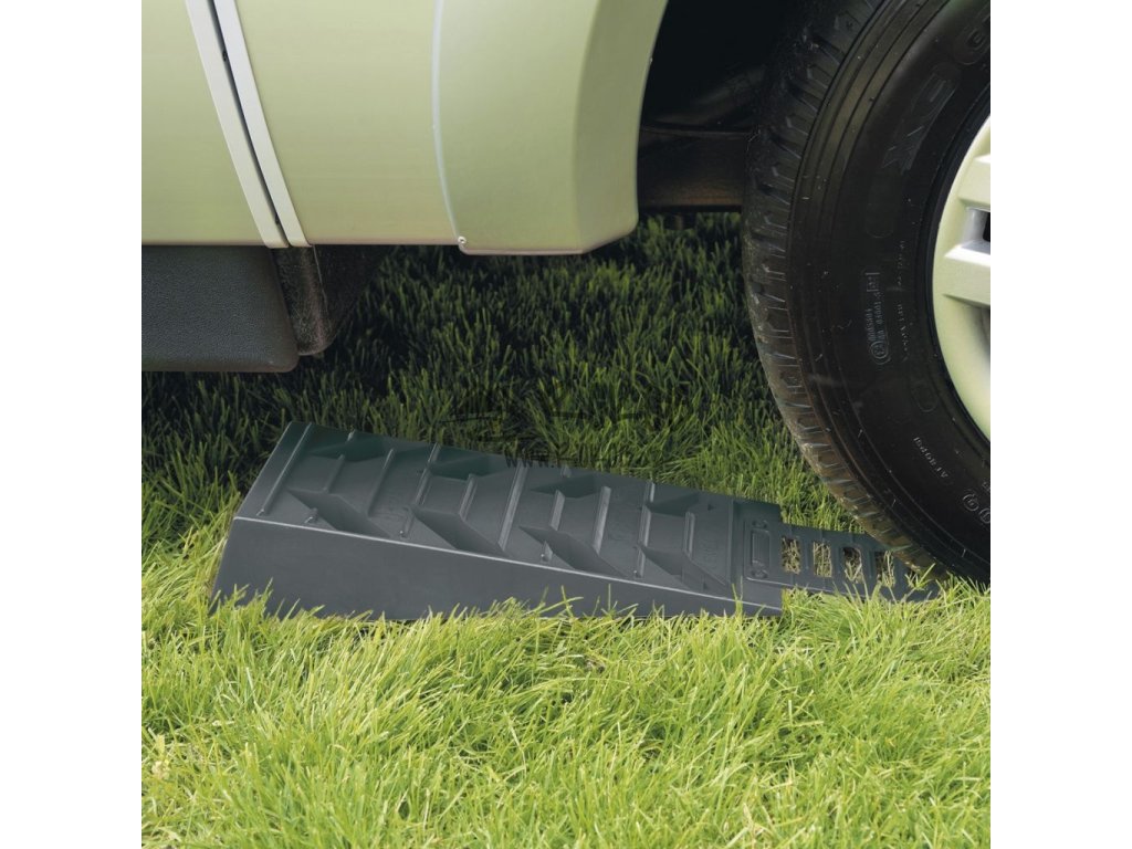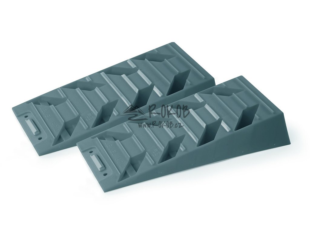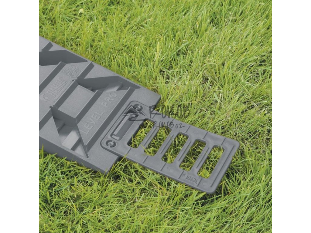 Level Pro - kompaktní rampa, ideální pro karavany, dodávky i osobní auta. Vyrobeno z pevného HD polyethylenu, odolného proti UV záření. Stohovací systém se samosvornou západkou. Protiskluzový povrch je speciálně tvarován, aby k nim dobře přilnul povrch pneumatik. Nájezdy jsou dodávány v sadě dvou kusů. Příslušenství (přepravní taška) není součástí balení, lze dokoupit zvlášť.